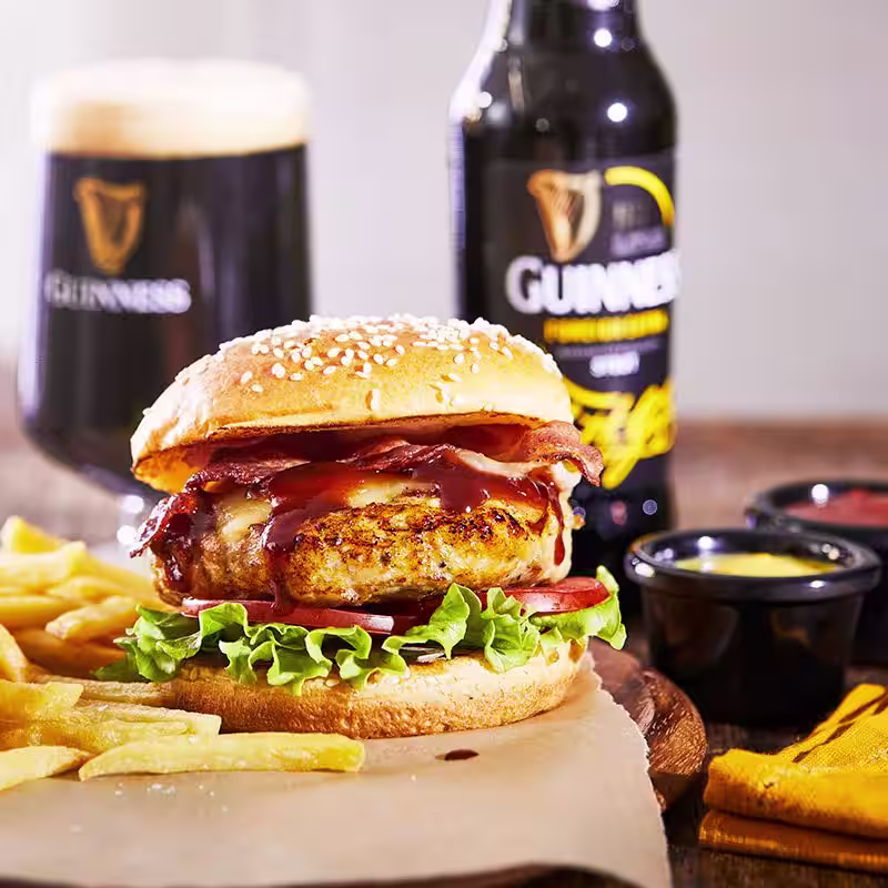 Fire up the BBQ for this Guinness infused chicken burger.